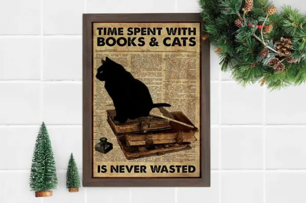 Time Spent With Cats And Books Is Never Wasted Poster Cat Artwork Book Posters Black Cat Wall Art Cat Lover Gift