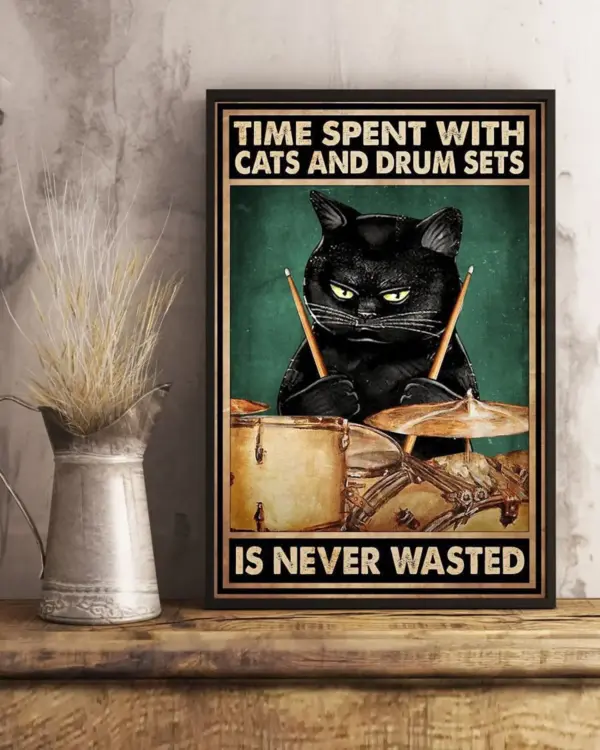 Time Spent With Cats And Drum Sets Is Never Wasted Poster Cat Poster Cat Lover Gift Drum Lover Poster Drummer Gift No Framed