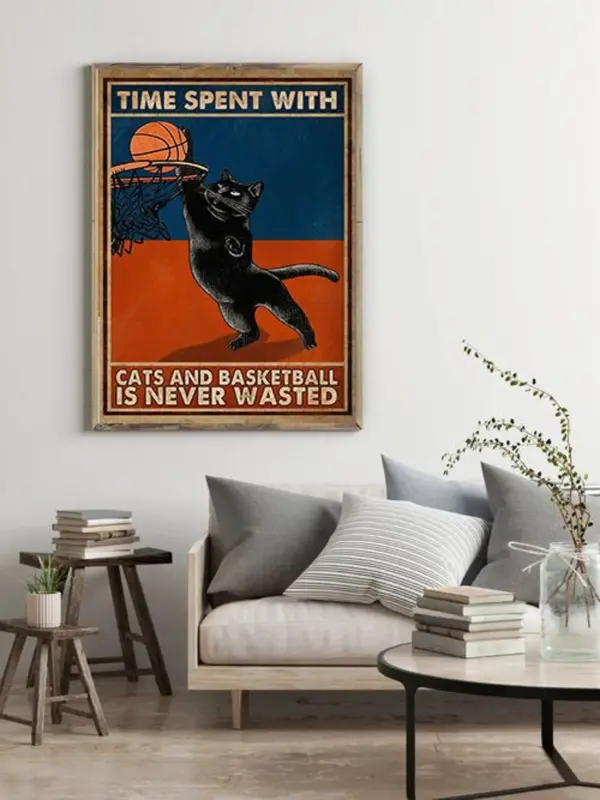 Time Spent With Cats Basketball Is Never Wasted Poster Black Cat Poster Cat Lovers Gift Basketball Gift Home Decor Funny Cat Decor