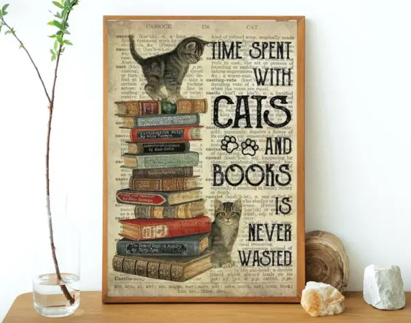 Time Spent With Cats Books Is Never Wasted Poster Vintage Cat Poster Book Lovers Ideal Gift For Book Lovers Vertical Poster No Framed