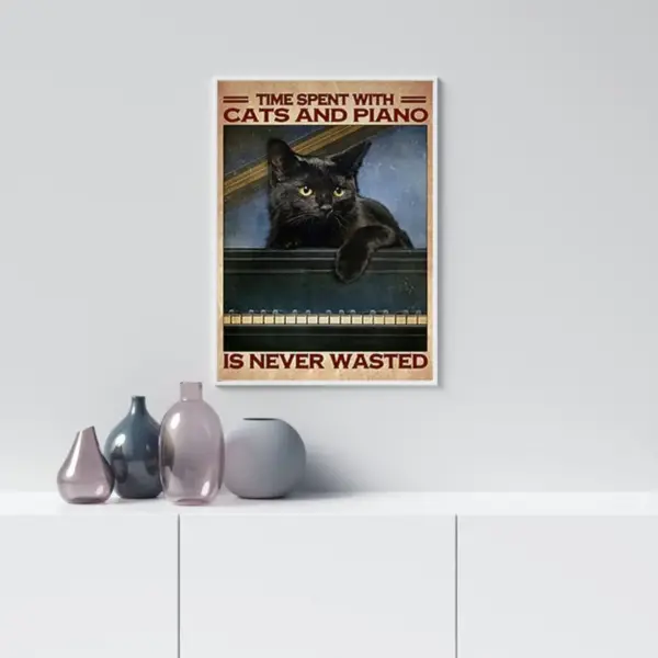 Time Spent With Cats Piano Is Never Wasted Poster Funny Cat Poster Music Poster Cat Lover Gift Home Decor Music Lover Gift