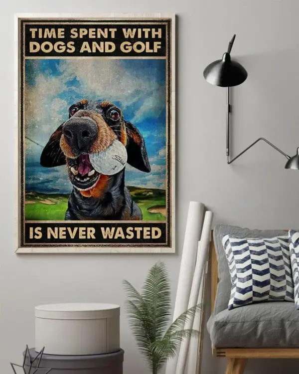 Time Spent With Dogs And Golf Is Never Wasted Vintage Poster Golfing Poster Golf Lovers Poster Gift For Golfer Dog And Golf Poster Framed Matte Canvas
