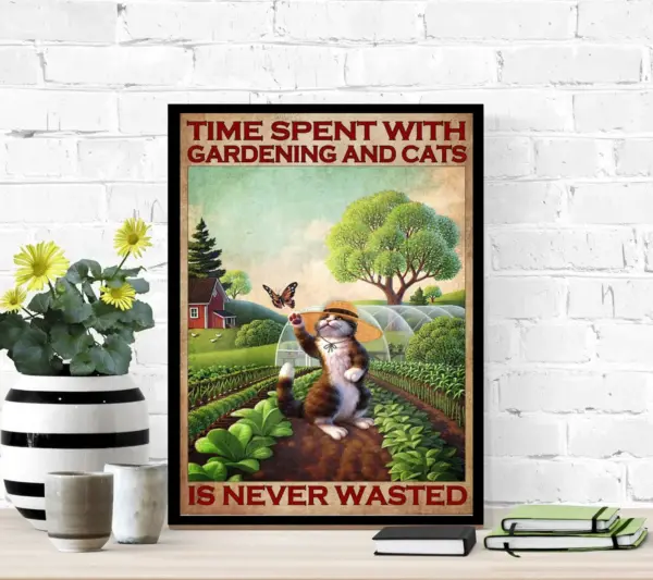 Time Spent With Gardening And Cats Is Never Wasted Poster