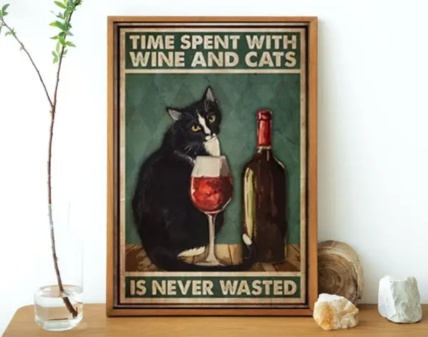 Time Spent With Wine Cats Is Never Wasted Poster Cat Lover Wine Lover Cat Lover Vertical Poster No Framed