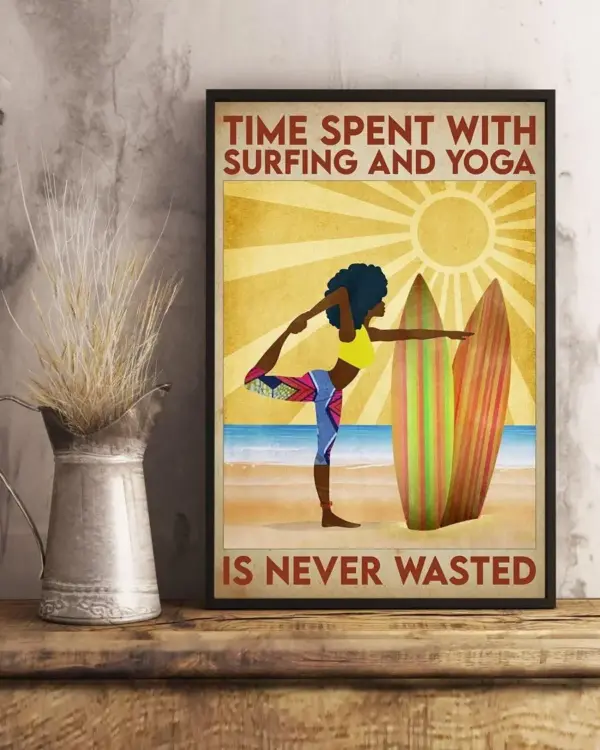 Time Spent With Yoga And Surfing Is Never Wasted Vertical Poster Yoga And Surfing Lover Poster Vintage Hippie Yoga Poster Framed Matte Canvas