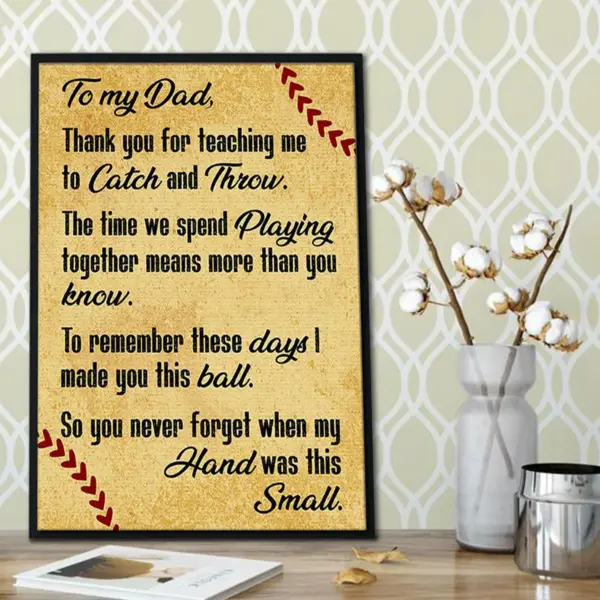 To Dad Thank You For Teaching Me To Catch And Throw Canvas From Son Daughter Softball Gift Father S Day Gift From Son