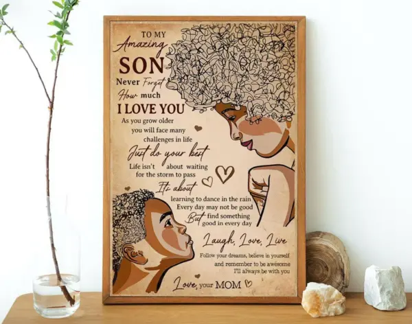 To My Amazing Son Never Forget Poster Black Family Black Son African American Black Mom And Son Vertical Poster No Framed