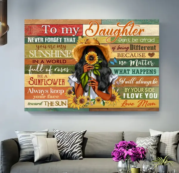 To My Daughter Canvas Art Black Mother Daughter Poster Black Daughter Wall Art African American Family Sunflower Daughter Wall Decor