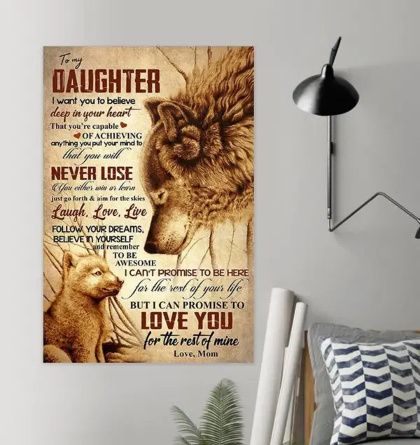 To My Daughter I Want You To Believe Deep In Your Heart Canvas Wolf Custom Name Family Wall Art Hang Print Poster Home Decor Housewarming