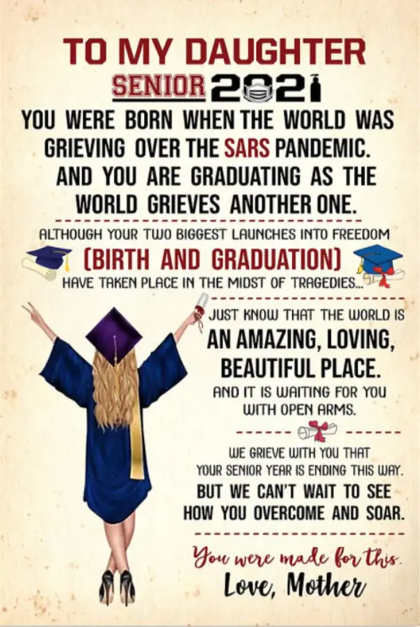 To My Daughter Senior 2021 From Mom Graduation Gift Poster Senior 2021 Gift Present From Mother