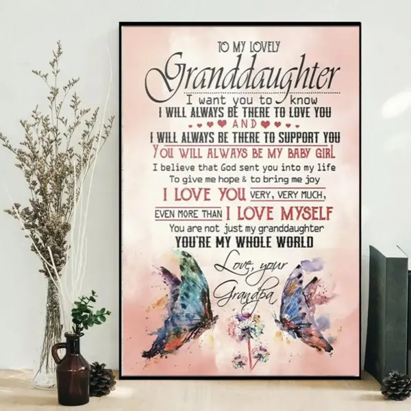 To My Grandaughter Poster Buffterfly Grandpa Poster Grandpa To Grandaughter Gift From Mom To My Daughter Wall Art Birthday Gift