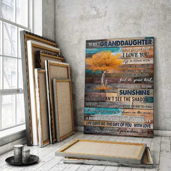 To My Granddaughter Canvas Art Family Tree Granddaughter Grandma Poster Life Gave Me The Gift Of You Wall Decor Rustic Family Wall Art