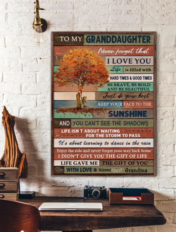 To My Granddaughter Poster Never Forget That I Love You Family Tree Print Gift For Granddaughter Gift From Grandma Kids Bedroom Decor