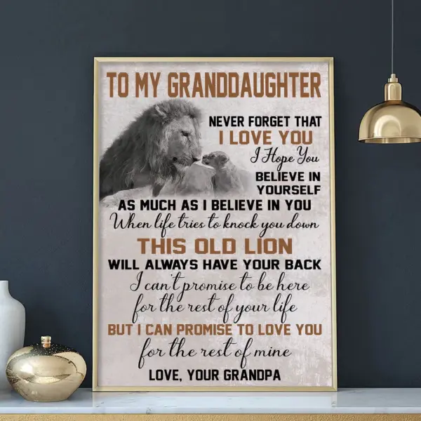To My Granddaughter Poster Never Forget That I Love You Lion Canvas Print Gift For Granddaughter Gift From Grandpa Kids Bedroom Decor