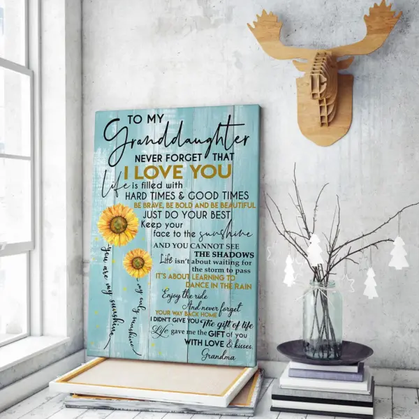 To My Granddaughter Sunflower Poster Canvas You Are My Sunshine Poster Never Forget That I Love You Gift From Grandma Mothers Day Gift