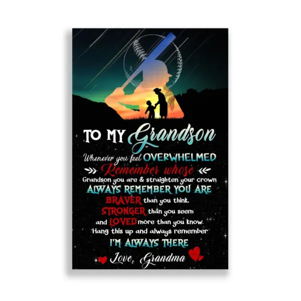 To My Grandson Baseball Poster Braver Strong Loved Baseball Batter Baseball Grandma Inspirational Wall Art Baseball Player Gifts