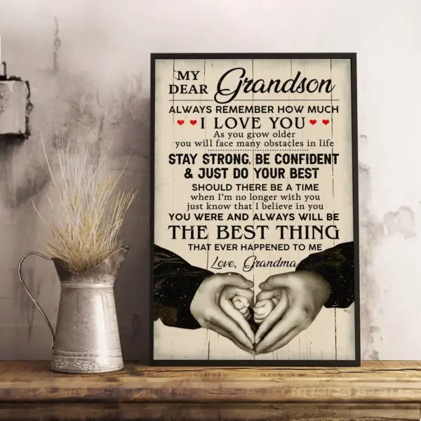 To My Grandson Canvas Art Grandma Grandson Poster Print Mothers Day Gift For Grandma Rustic Family Wall Decor Hand Holding Art