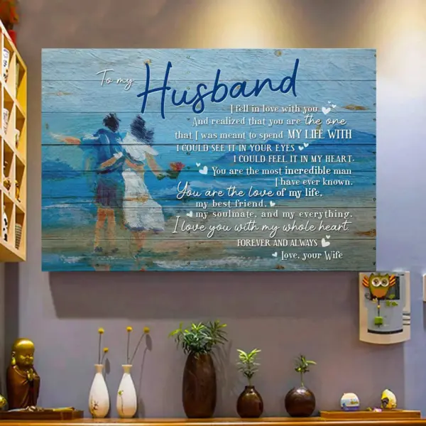 To My Husband I Fell In Love With You Canvas Wall Art Farmhouse Sign Decor Poster Birthday Wedding Housewarming Gift