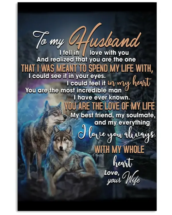 To My Husband You Are The Love Of My Life Wolf Print Canvas Wall Art Poster Anniversary Birthday Christmas Housewarming Gift Home