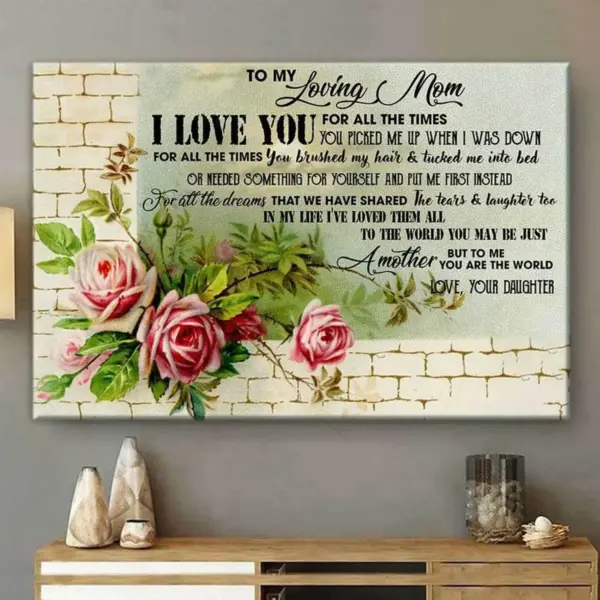 To My Loving Mom I Love You For All The Times You Picked Me Up When I Was Down Canvas Happy Mother S Day Wall Canvas Wall Art