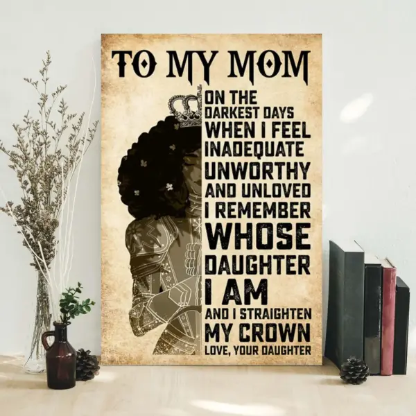 To My Mom On The Darkest Days When I Feel I Remember Whose Daughter I Am Poster Mom Birthday Gift Black Queen Poster Unframed Poster