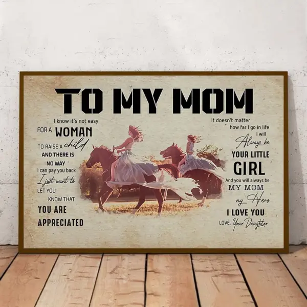 To My Mom Poster Horse Mom Paper Poster Mothers Day Gift Wall Decor Sign For Home Best Gift Ever Gift For Mom Love My Mom