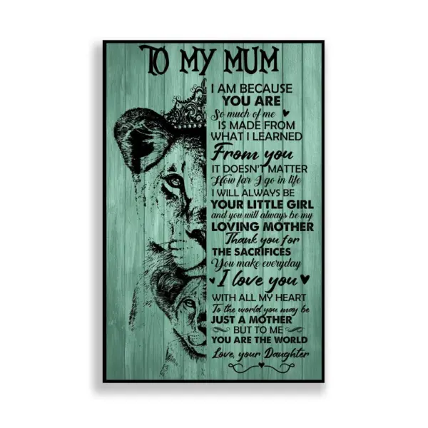 To My Mum Poster Thankful Gift For Mom Mom Daughter Mother S Day Lionesses Wall Hanging Decor Gift From Daughter Mom Birthday Gift