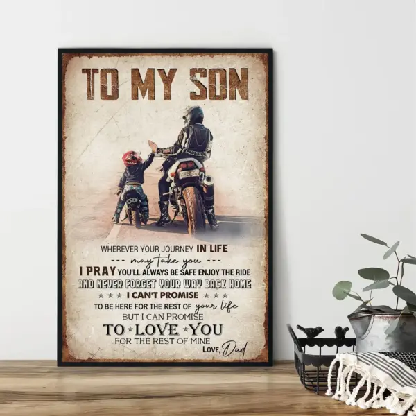 To My Son Canvas Art Motobiker Dad Poster Father S Day Canvas Gift Dad And Son Wall Decor Canvas For Son Son Birthday Gift Ideas