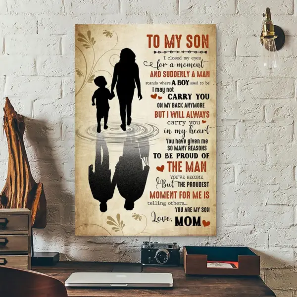 To My Son Canvas Wall Art Mom And Son Poster Carry You In My Heart Gift From Mom Son Gift Son Graduation Poster Love Son Canvas