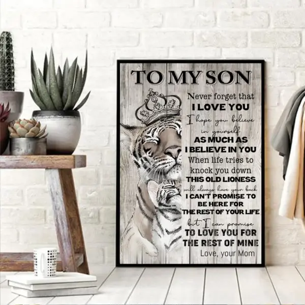 To My Son Never Forget I Love You Canvas Wall Art Mother And Son Canvas Lioness And Lion Wall Decor Birthday Gifts For Son Home Decor