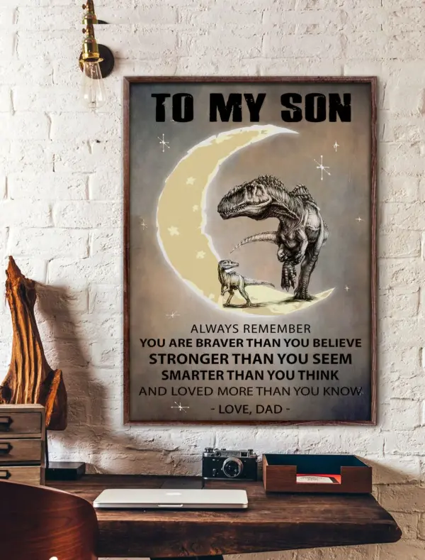 To My Son Poster Always Remember You Are Braver Than You Believe Print Dinosaur Poster Gift For Son Gift From Dad Kids Bedroom Decor