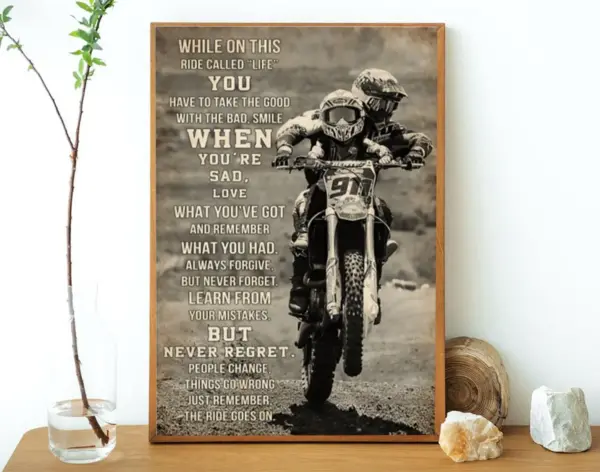 To My Son While On This Ride Called Life Never Regret Poster Motorcycle Gift Love Motorcycle Dad Son Vertical Poster No Framed