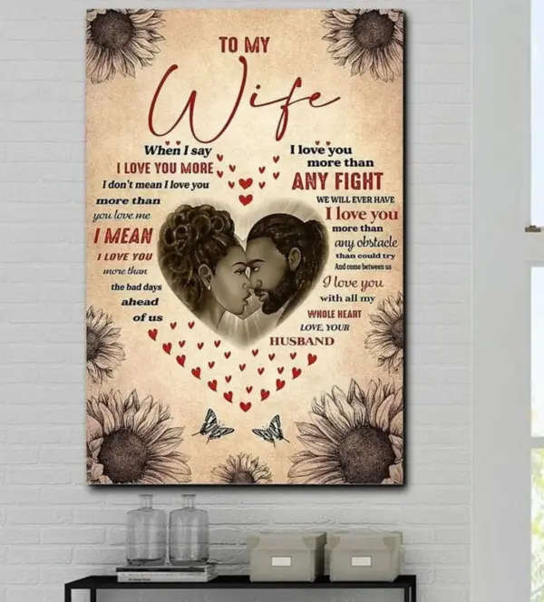 To My Wife Canvas In Framed Poster No Framed Love Quote Decor Husband Wife Canvas Decor Afro American Canvas Poster