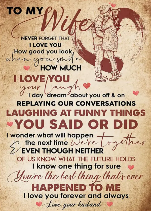 To My Wife Never Forget Taht I Love You How Good You Look When You Smile Poster Home Decor Waal Art Print Gift