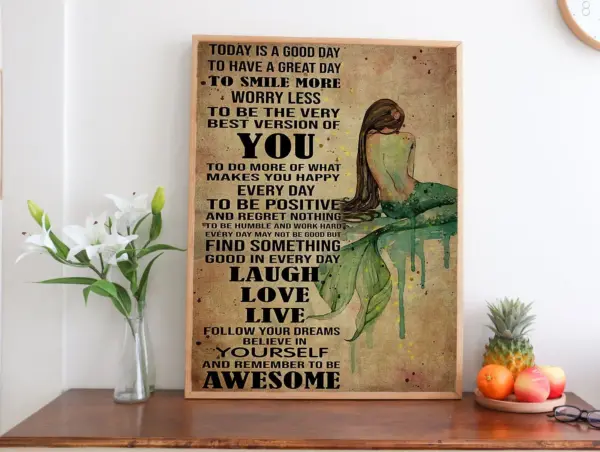 Today Is A Good Day Poster Laugh Love Live Poster Mermaid Poster Mermaid Wall Art Best Gift For Mermaid Lover Mermaid Wall Decor