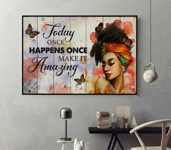 Today Only Happens Once Make It Amazing Poster Black Woman Poster Make Today Amazing Print Framed Print Black Girl Afro Unique Gift
