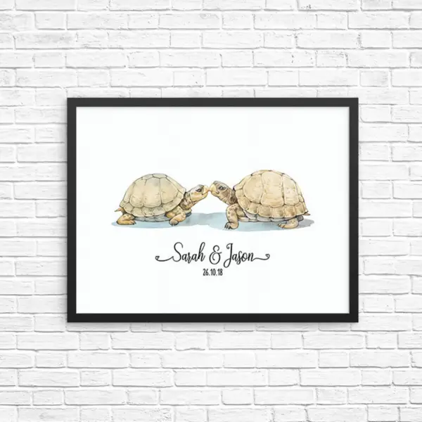 Tortoise Wall Art Custom Name Print Personalized Couple Wedding Decor Animal Sign Newlywed Gift Poster Valentine Housewarming Gift