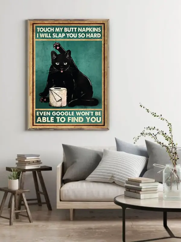 Touch My Butt Napkins I Will Slap You So Hard Even Google Won T Be Able To Find You Poster Cat Poster Funny Black Cat Poster Bathroom Decor