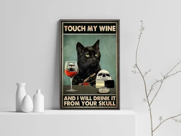 Touch My Wine And I Will Drink It From Your Skull Poster Black Cat Poster Drinking Wine Art Cat And Wine Print Signs For Home