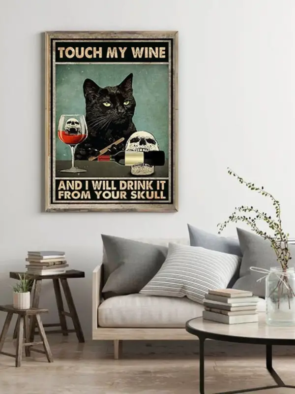 Touch My Wine I Will Drink It From Your Skull Poster Black Cat Poster Cat Lovers Gift Drinking Poster Wine Print Skull Print Skeleton