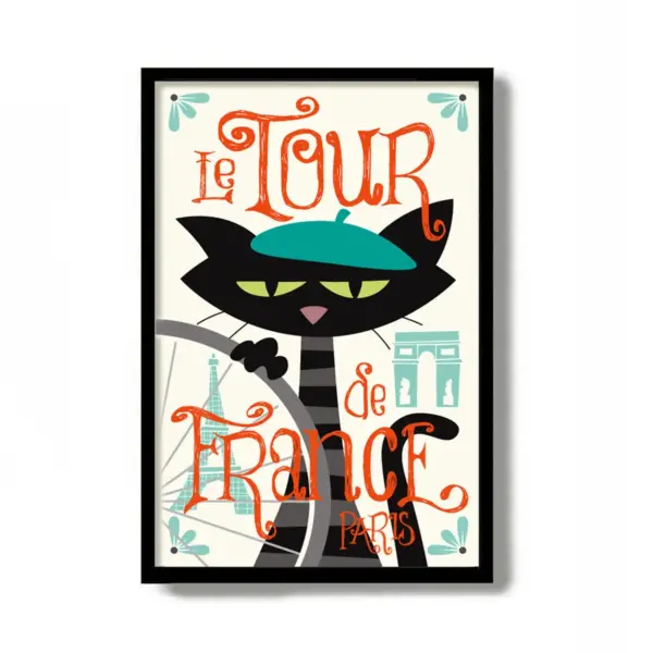 Tour De France Poster Bicycle Art French Decor Bike Rider Gift Black Cat Art Print Mid Century Modern Art Paris France Eiffel Tower