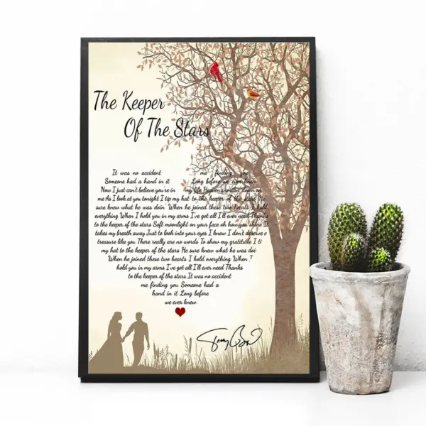 Heart-shaped art print featuring Tracy Byrd's "Keeper of the Stars" lyrics. Perfect country music gift for lovers of song & art. Unframed.