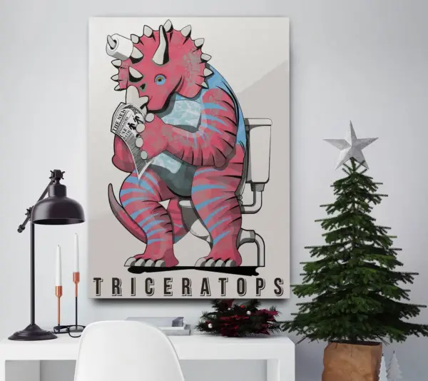 Triceratops On The Toilet Poster Dinosaur Bathroom Canvas Print Dinosaur Wall Art Funny Bathroom Decor Bathroom Poster Funny Wall Decor