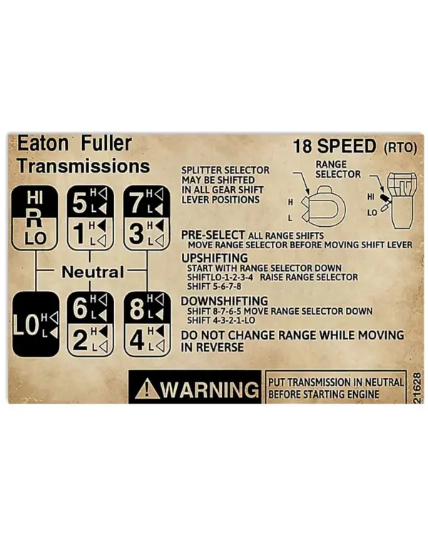 Trucker Eaton Fuller Transmission Warning Information Poster