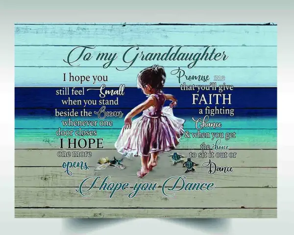 Heartwarming canvas poster with ocean and turtle theme, inspiring message for granddaughters about resilience, hope, and personal growth.