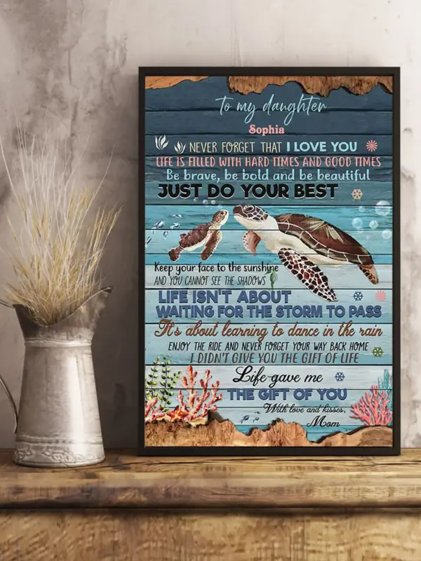 Turtle To My Daughter Custom Name Poster Never Forget That I Love You Family Poster Turtle Lovers Never Forget That I Love You Poster