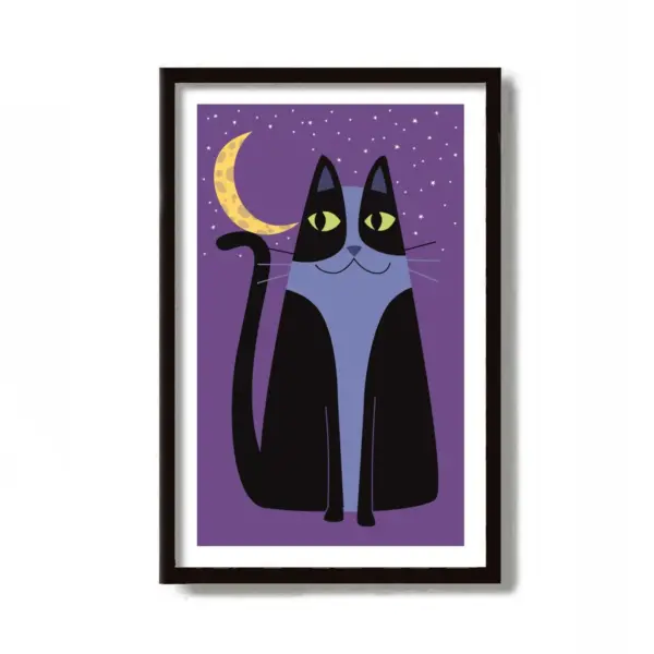 Tuxedo Cat Art Print Cat Lover Gift Cat And The Moon Mid Century Modern Art Mom Gift Black And White Cat Gift Cat Portrait Cat Poster