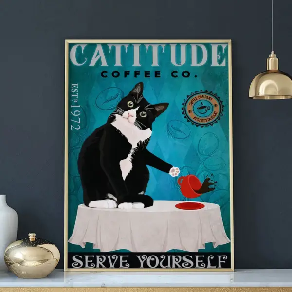 Tuxedo Cat Poster Catitude Coffee Co Serve Yourself Poster Cat Poster Cat Smoke Poster Vintage Posters Funny Cat Print Framed Poster
