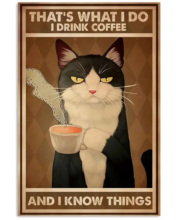 Tuxedo Cat Thats What I Do I Drink Coffee And I Know Things Poster