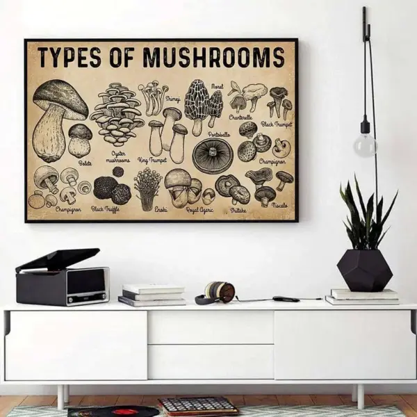 Types Of Mushrooms Horizontal Canvas